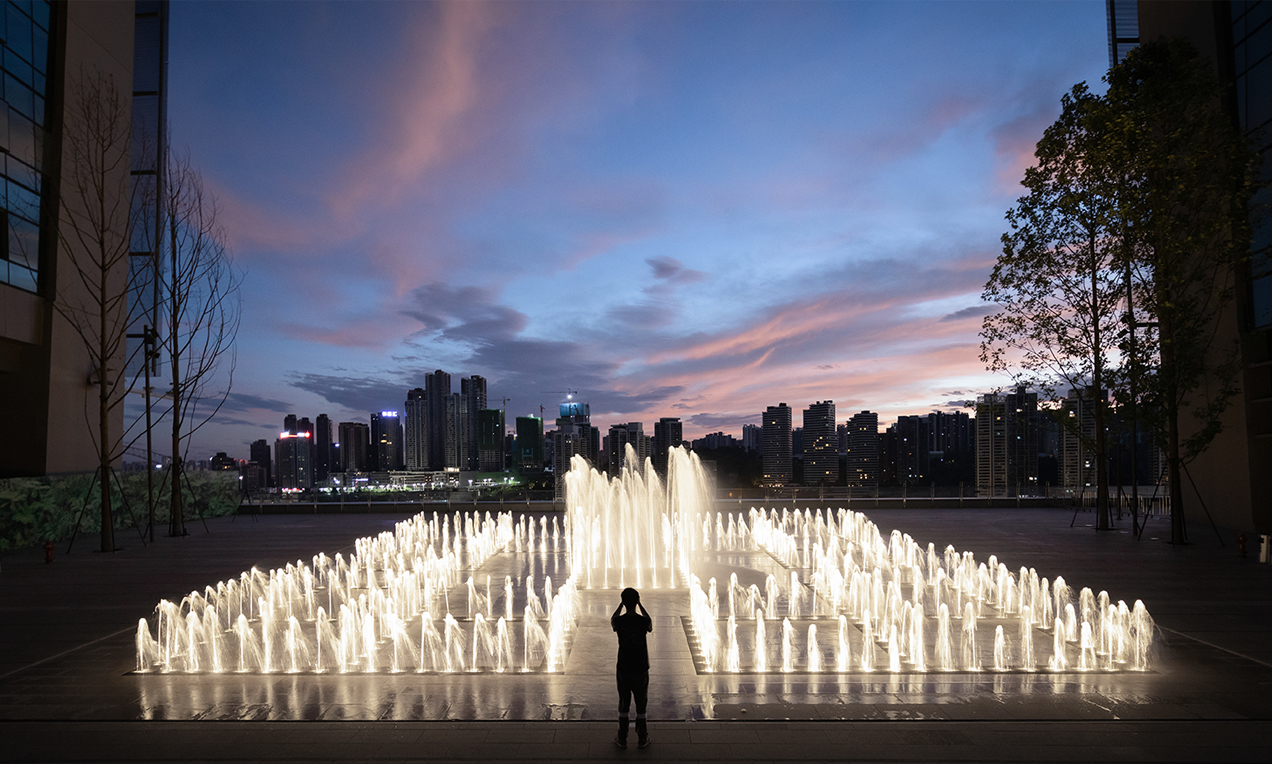 水本無形,它的物理特性讓它能輕易地跟隨容器而呈現不同的面貌。獨特的延展性使得水能呈現無以計數的不同效果。燈光的布置,介質的紋理,顏色和動態(tài)都能給水帶來無窮的變化。